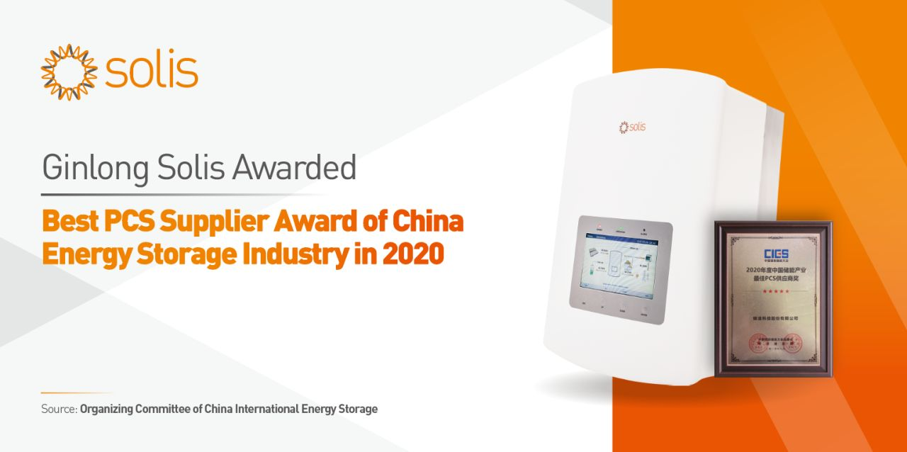 Zhejiang, Chine – 30 septembre 2020. Solis, marque de l'entreprise Ginlong Technologies (code boursier : 300763.SZ), leader mondial de la fabrication d'onduleurs photovoltaïques à chaînes, a remporté le « Prix du meilleur fournisseur de PCS de l'industrie du stockage d’énergie en Chine 2020 » lors de la 10e Conférence internationale sur le stockage d’énergie qui s'est tenue à Shenzhen, en Chine.