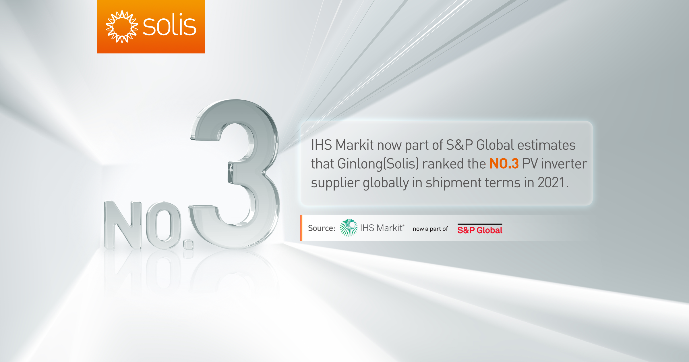 Ningbo, Chine. Juin 2022. L'institut de recherche notable internationale IHS Markit (fait partie de S&P Global) annonce les 10 principales livraisons mondiales d'onduleurs solaires pour 2021, Ginlong (Solis) prend la 3e position.