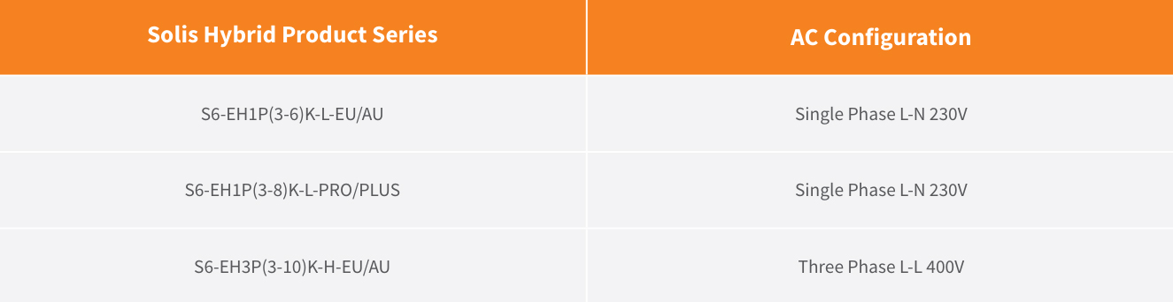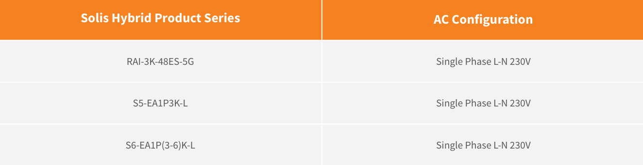 • La configurazione AC devecorrispondere a quelladell'inverteribrido Solis aggiunto: