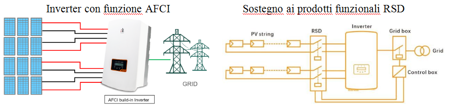 Per i sistemi PV applicati agli edifici, la protezione è vitale, in particolare nei confronti delle funzioni pericolose. Quindi, gli inverter devono munirsi della funzioni di sostegno come Interruzione del Circuito per Errore d'Arco(AFCI) e Spegnimento Rapido(RSD) per realizzare la piena protezione sistematica e la susseguente operazione, manutenzione di sicurezza.
