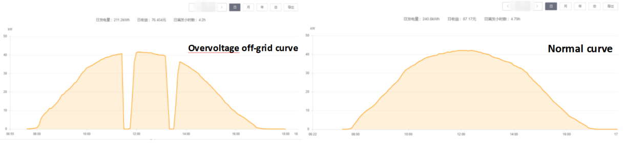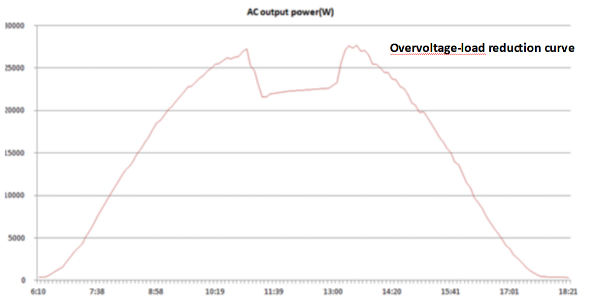 솔루션: 그리드 흡수로 인한 현장 시스템의 과전압 문제를 목표로 합니다. 인버터 "과전압 및 부하 감소" 기능을 사용하면 시스템 차단으로 인한 더 많은 발전 낭비를 방지할 수 있습니다.