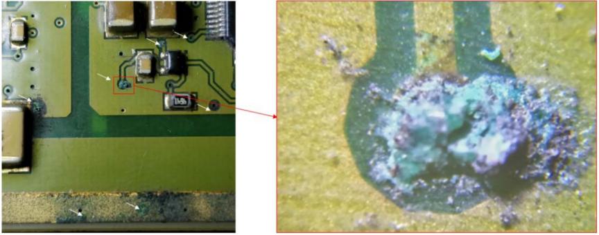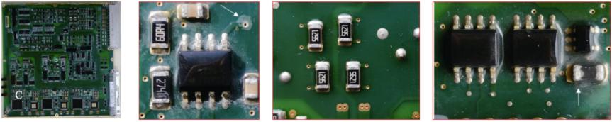 그림 3: 인버터 내부의 부식된 PCB 보드 및 부품