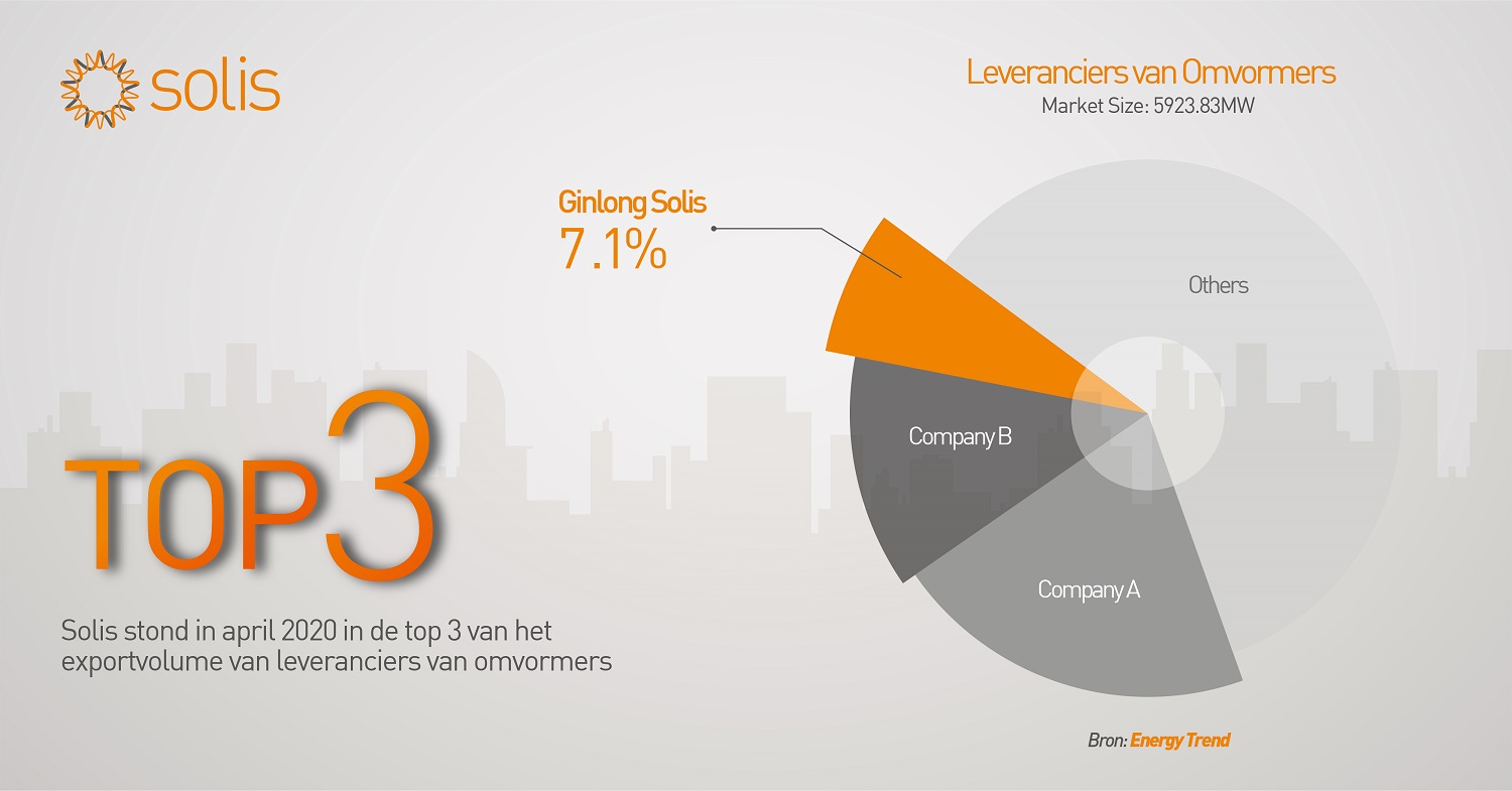 Zhejiang, China - 29 mei 2020. Ginlong Technologies (Stock Code: 300763.SZ), een wereldleider in de productie van fotovoltaïsche stringomvormers, is de derde grootste Chinese exporteur in zijn categorie, volgens marktonderzoeksbureau Energy Trend. Het marktaandeel van Ginlong, vermeld als de beste derde leverancier van omvormers voor de maand april, vertegenwoordigt meer dan zeven procent van de totale export. In april bijna zeven procent minder zendingen dan in maart.