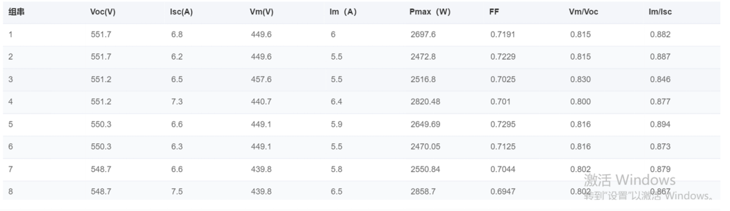 Figuur 8 I-V data report analyse van de curve van alle ketens op deze schijf in dit commerciële project