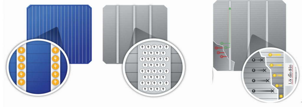 Celstroom wordt voornamelijk verzameld en geleid uit rasterlijnen en dunne rasters met oppervlakken loodrecht op elkaar. Daarom, wanneer microscheuren (voornamelijk parallel aan de staven) ervoor zorgt dat de dunne lijnen van het netwerk breken, wordt de stroom niet efficiënt naar de staven getransporteerd, wat leidt tot een gedeeltelijke of zelfs totale storing van de cel., en kan ook fragmenten, hot spots, enz. veroorzaken, waardoor een energetische demping van de componenten ontstaat.