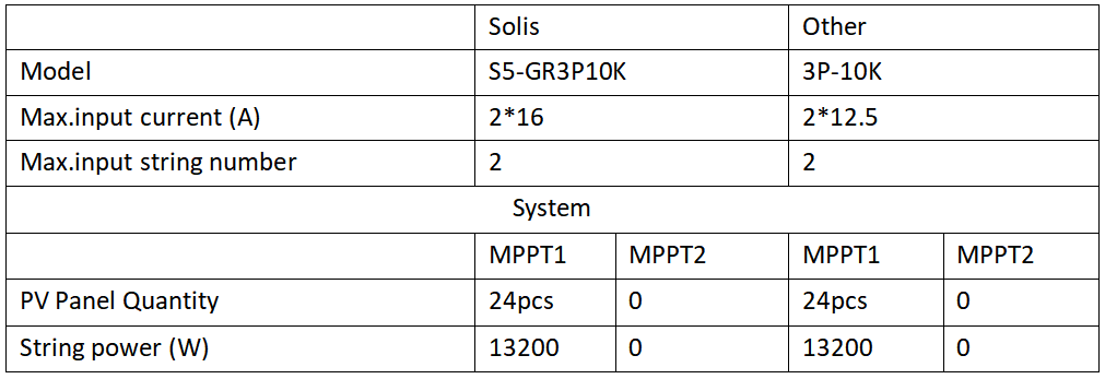 Bardziej odpowiednie i wskazane jest wybranie jednego łańcucha 16 A lub zainstalowanie więcej falowników. Oczywiście, można również użyć falownika z prądem wejściowym MPPT o wartości ponad 16 A. W przypadku elementów o średnicy 182 mm obciążalność falownika prądu wejściowego 16 A jest większa niż wystarczająca.