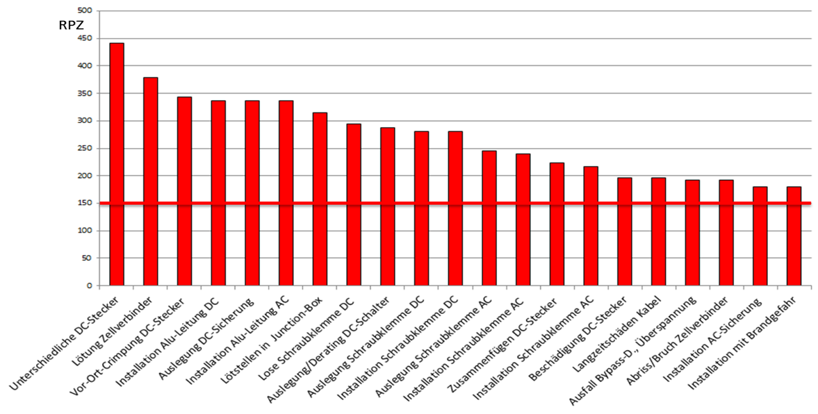 Rysunek: Wyniki analizy FMEA "PV-Brandschutz" z projektu Fraunhofer ISE&TÜV