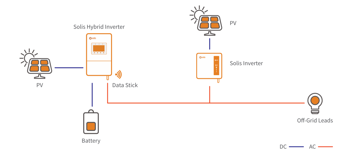 • A configuração AC deve corresponder ao inversor Solis acoplado em AC: