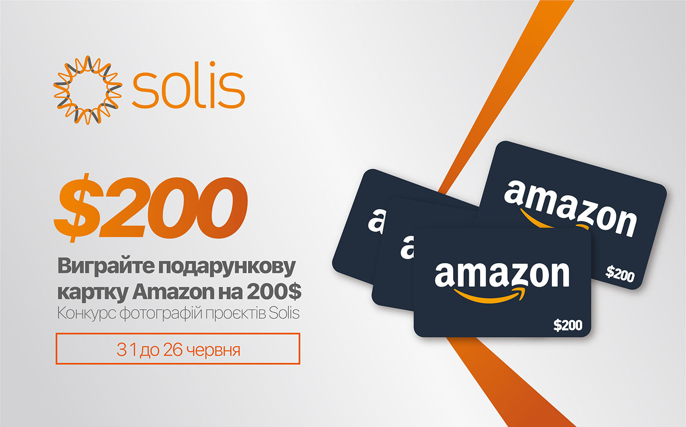 Поділіться своїми найкращими фотографіями проєктів із високовольтними інверторами Solis у соціальних мережах та виграйте подарункову картку Amazon! З 1 до 26 червня розкажіть нам про свій проєкт і чому ви вибрали Solis, позначте @Solis у своєму дописі та позмагайтеся за ці призи: