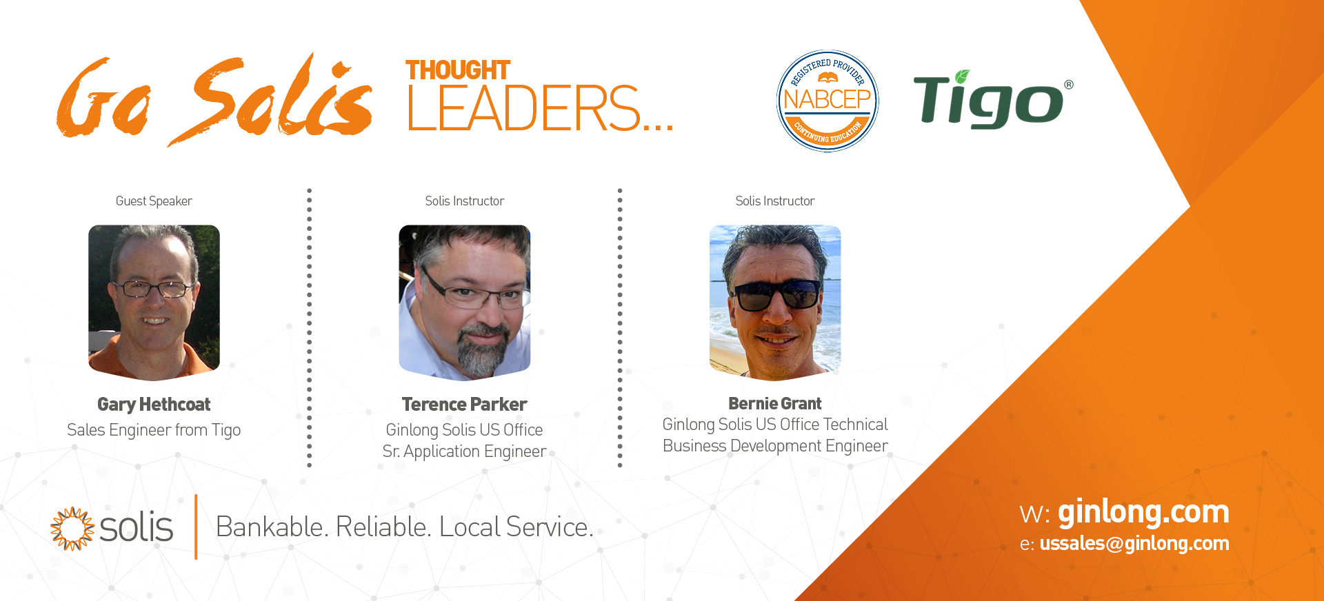 Solis Instructors: Terence Parker, Ginlong Solis US Senior Application Engineer Bernie Grant, Ginlong Solis US Technical Business Development Engineer